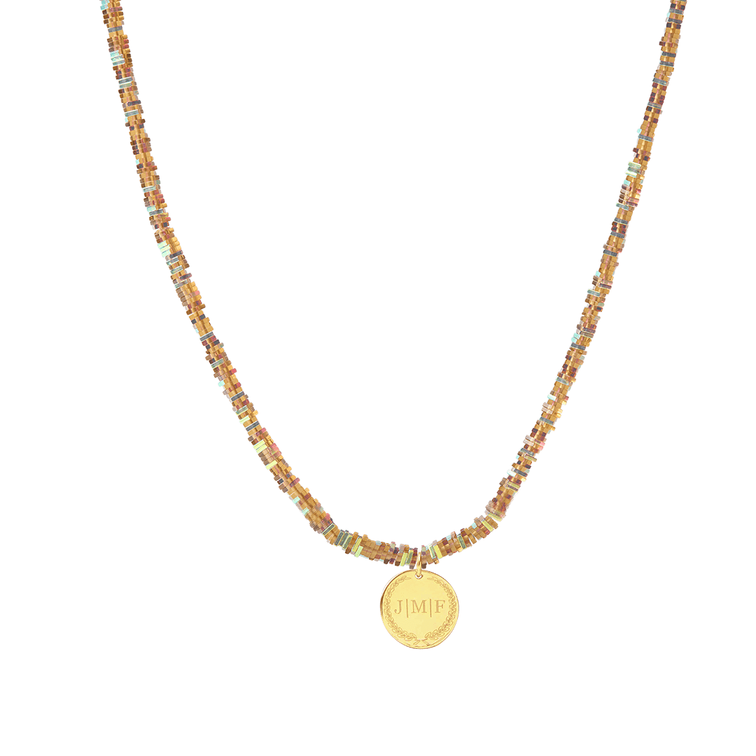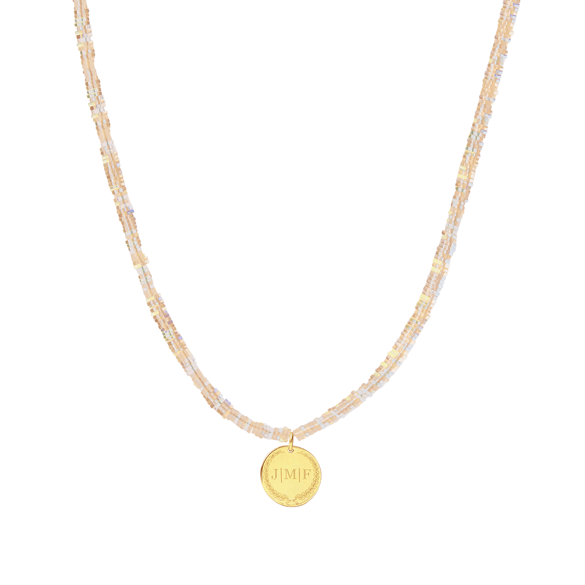 Voeg een sprankelende touch toe aan je look met de Sparkle Beaded Initial Coin ketting. Personaliseer de coin met jouw initialen en/of personaliseer de achterkant om een persoonlijke ketting te creëren die perfect past bij elke gelegenheid. Wil je nog meer glans toevoegen aan je look? Ontdek dan onze Sparkle Beaded Letter Ketting.