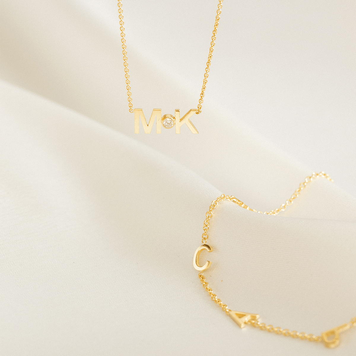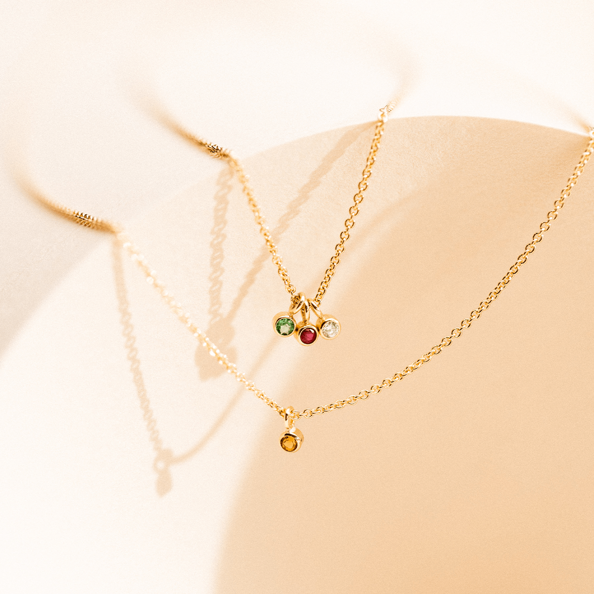 - Een extra birthstone of letter toevoegen aan bestaande stukken, zoals onze handgemaakte gouden letter kettingen