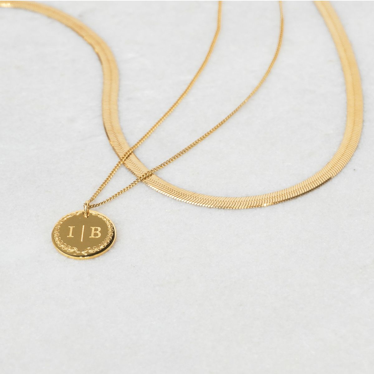 Wij zijn fan van het layeren en stacken van onze kettingen, daarom hebben wij een Stack Your Coin Set toegevoegd. Onze bestseller in een set! Combineer de Initial Coin Ketting met de Lizzy Herringbone Ketting en je outfit is helemaal compleet. Personaliseer de Initial Coin Ketting met 1 t/m 4 initialen van jou of je dierbaren en vergeet niet de achterkant eigen te maken door middel van een tekst of vingerafdruk.