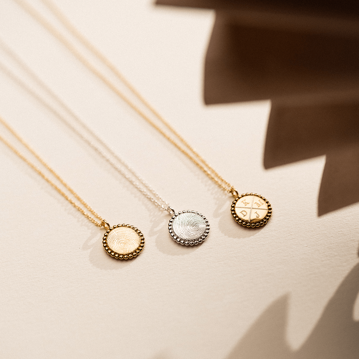 Niets is persoonlijker en unieker dan de vingerafdruk van een dierbare dicht bij je te kunnen dragen. Een warme herinnering aan een voor jou bijzonder persoon, dat kan met de Bubble Fingerprint Coin Ketting. Deze ketting is meer dan alleen een sieraad, het is een symbool van liefde, herinnering en verbondenheid. Personaliseer de coin met een vingerafdruk die voor jou bijzonder is en draag deze met trots om je hals of verras een geliefde met deze bijzondere ketting. Wil je weten hoe je een vingerafdruk kunt maken? Klik dan hier.