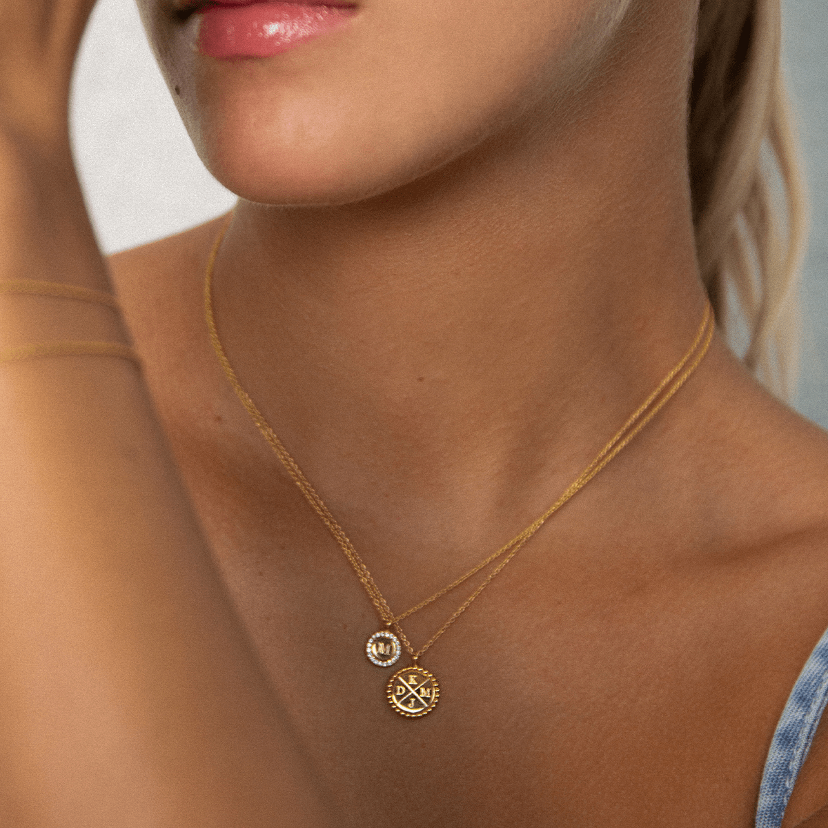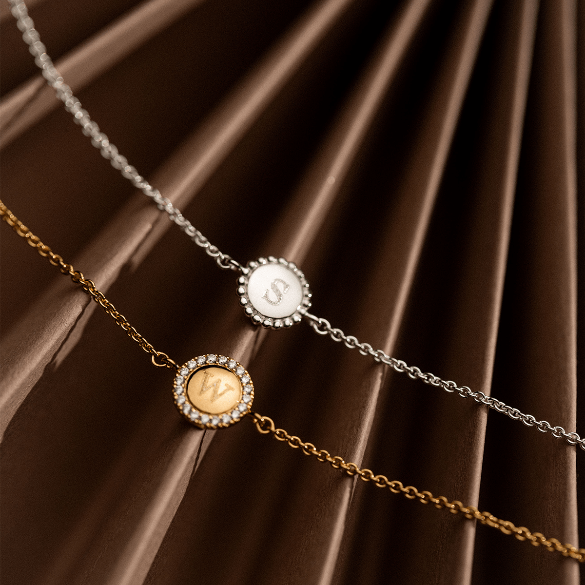 Tiny Pavé Initial Coin Ketting & Tiny Pavé Initial Coin Armband
