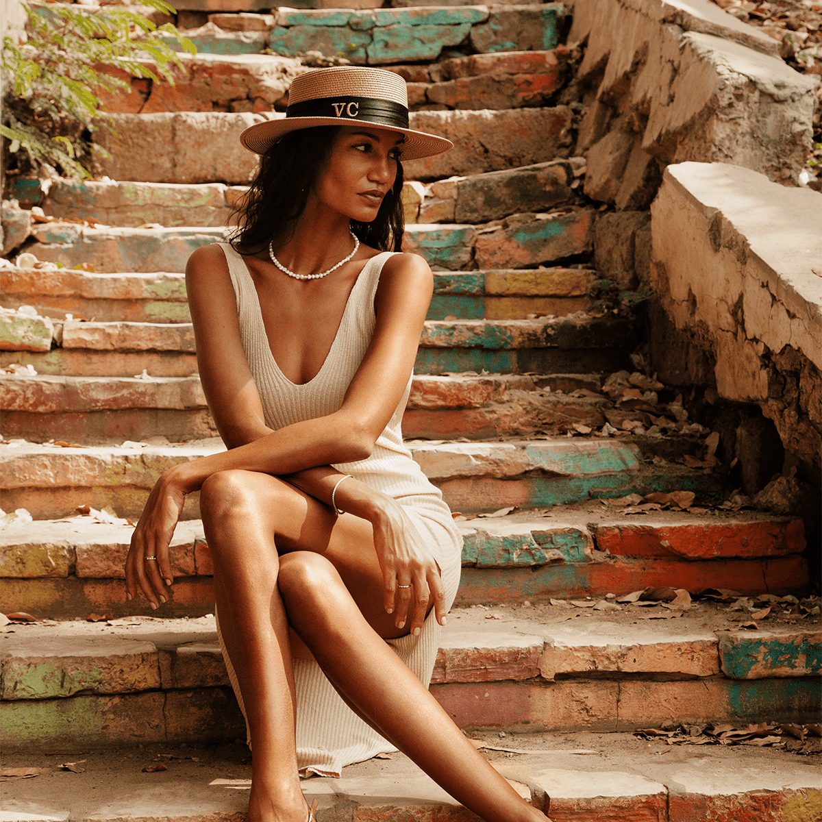 Dankzij de mogelijkheid om de hoed te personaliseren met je eigen initialen, of die van een dierbare geef je er een persoonlijke en unieke draai aan. Combineer de Straw Panama Hat met een maxijurk en minimalistische sandalen voor een effortless chique look. Voeg voor wat extra kleur onze Fierce Crystal Chain toe en laat je look stralen met de Fierce Hoops, perfect om te laten stralen op jouw vakantie aan het strand.