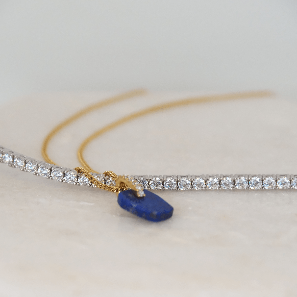 In addition to the standard collection, we also offer personalized options such as the Shine Bright Set. This best-selling set is a combination of the The Power Of Gemstone Necklace with the Tilly Tennis Necklace and can be personalized to your liking! Personalize the The Power Of Gemstone with a gemstone of yours or your loved ones.